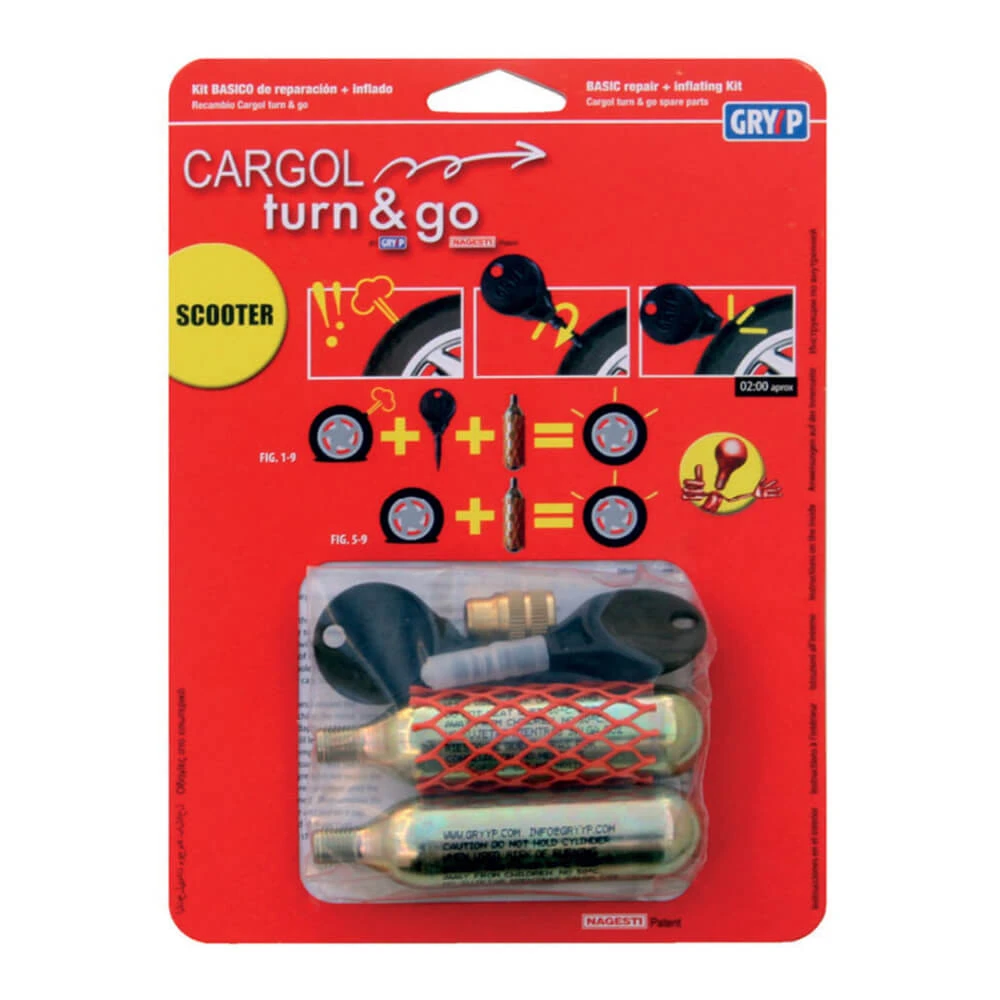 - Contains: 2 Cargol puncture repair tools, a valve adaptor and a protective sleeve to use with the two 16g CO2 cylinders