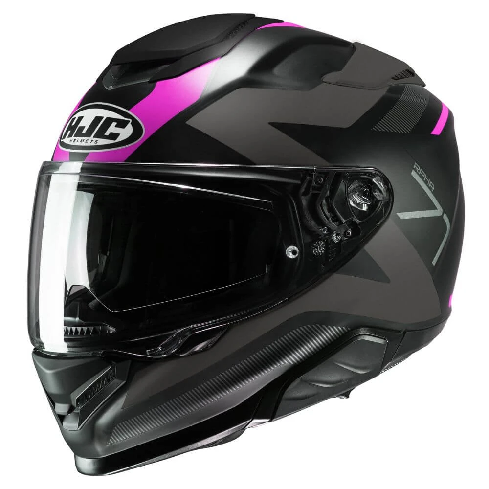 The HJC RPHA 71 Pinna MC8SF Pink Full Face Helmet is a high-quality sport-touring helmet that offers superior protection and improved performance. Its PIM Evo shell is made from a combination of carbon-aramid fibre, carbon fibre, glass fibre, organic non-woven fabric, and natural linen fibre, making it shock-resistant and lightweight.
