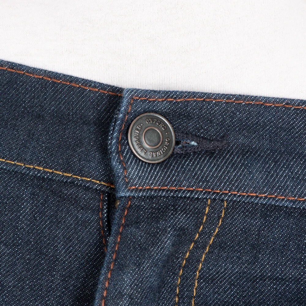 Now boasting CE AAA certification! Enjoy the advantages of Oxford’s lightweight bi-composite stretch denim, Armourlite™, which offers an outstanding fit and approved AAA performance. These AAA single layer denim jeans provide level 2 CE Dynamic protectors for a lightweight and comfortable riding experience. Oxford set out to create performance denim specifically designed for those on two-wheeled adventures; to this end, new yarn and fibre technologies, finishes, and dying techniques were employed. Through careful testing, both in a controlled setting and in the field, Armourlite™ was born; this highly durable denim looks and feels like vintage material yet stands up to wear and tear. To achieve this, expert weavers and warpers utilized a military-grade polyamide fibre in the weaving process. Additionally, a two-way stretch was added to maximize mobility and comfort, and a quick-dry technology was added to draw sweat and improve water repellence.