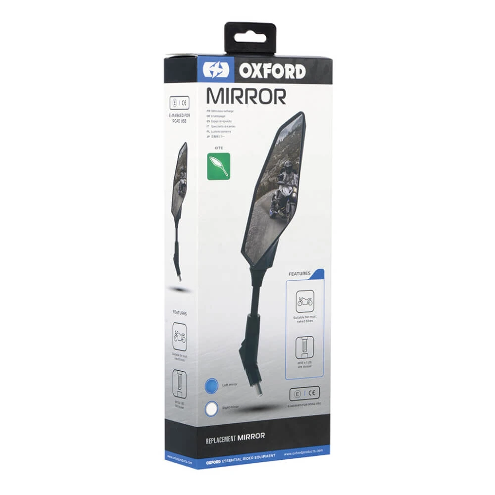 The Oxford Mirror Kite Left is a suitable replacement mirror for the majority of naked bikes.