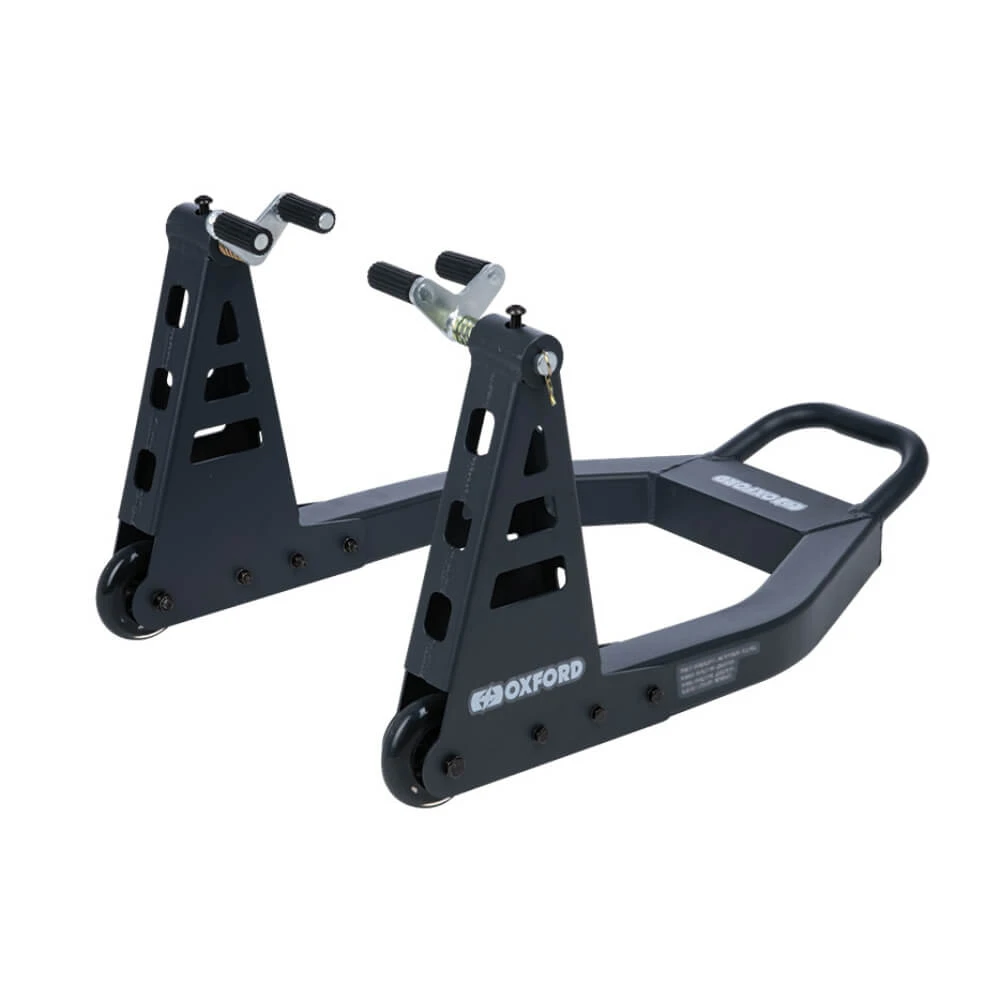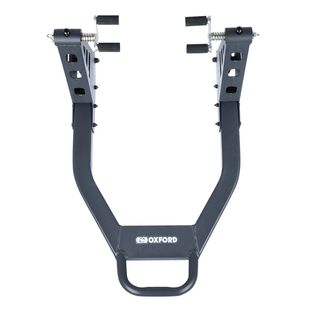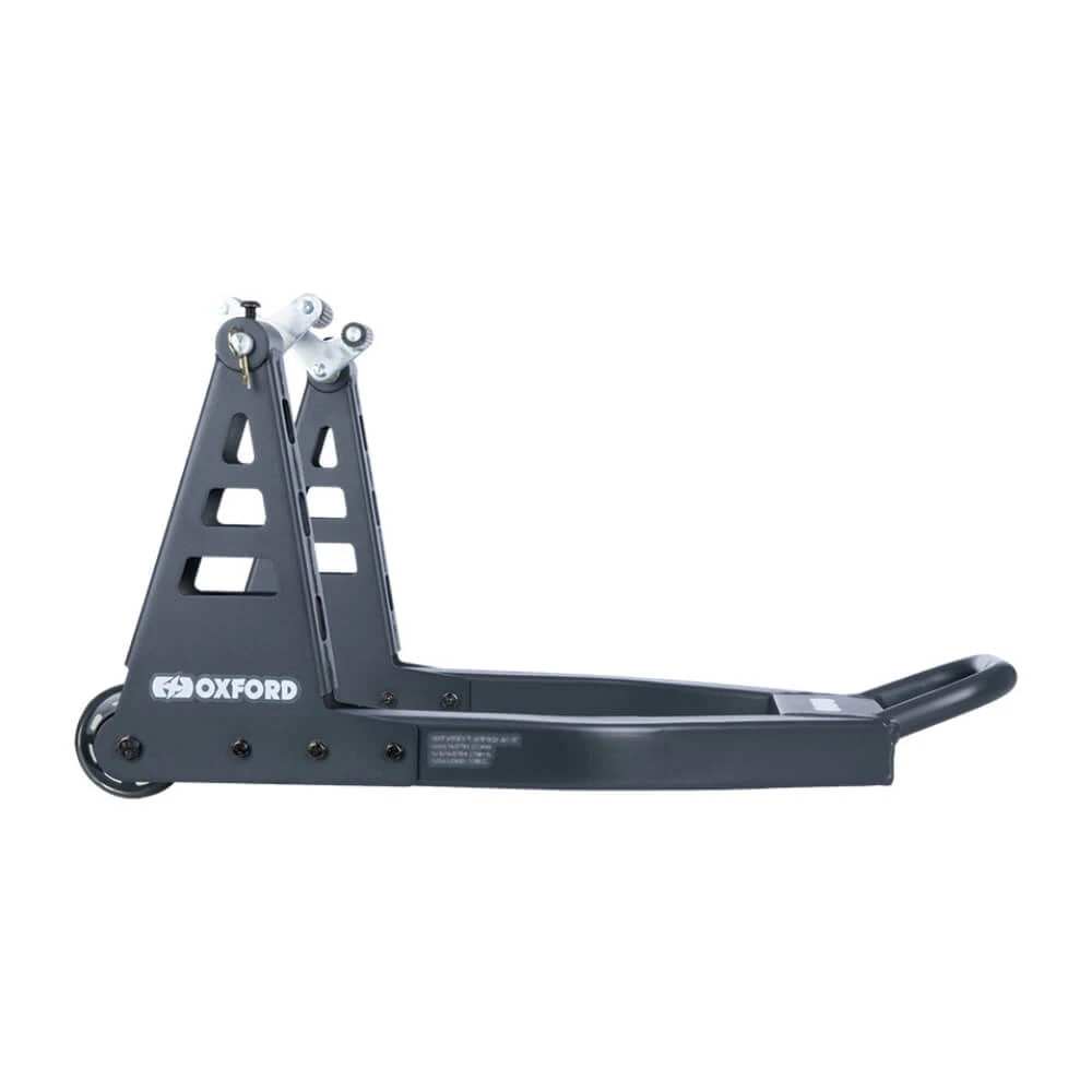 This Oxford ZERO-G LITE Front Stand utilizes contemporary CAD technology and 3D modelling processes to create an effective design. With minimal effort, the ZERO-G range of paddock stands is capable of providing great load relief. Additionally, its lightweight construction adds to its user friendliness and convenience.
