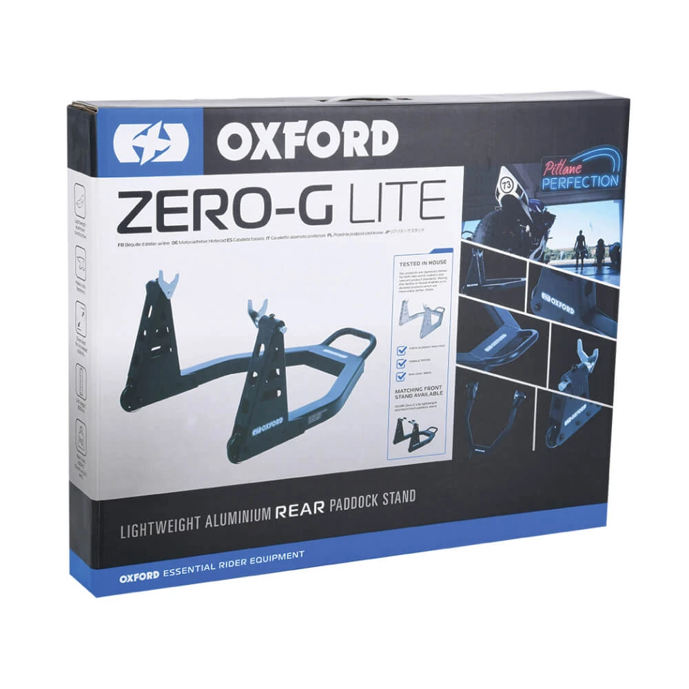 While looking for a lightweight, yet resilient paddock stand for your pit lane needs, consider the Oxford ZERO-G LITE. Boasting a construction of durable aluminium and heavy-duty fasteners, the stand weighs a minimal 4kg with an oversized base for greater stability. This product is the pinnacle of pit lane perfection.