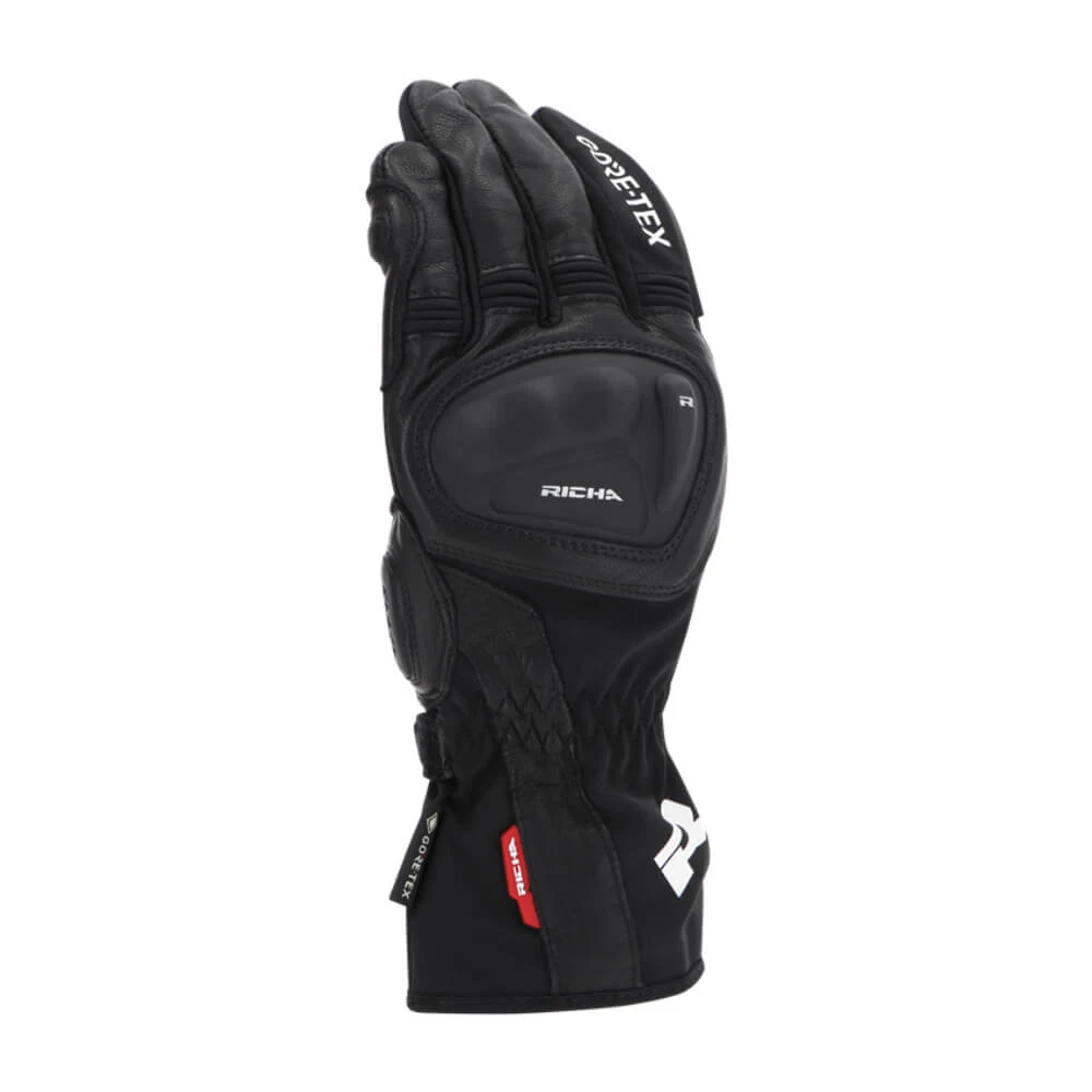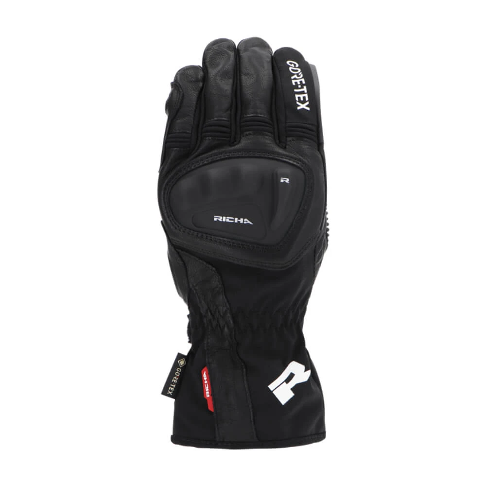 The Richa Hurricane GTX Gloves in Black offer exceptional sports touring performance, featuring Gore-Tex construction and hard knuckle protection; earning a Ride Best Buy award!