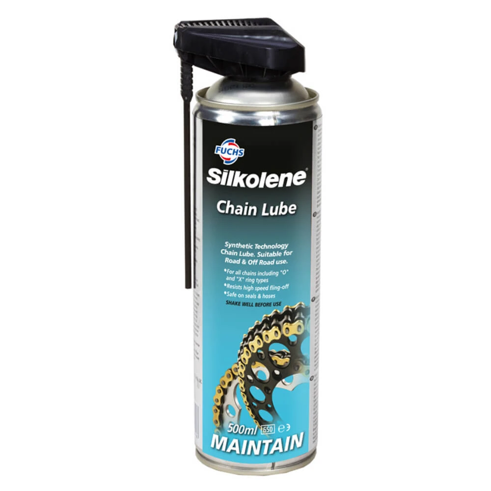 Silkolene Chain Lube (500ml) is for all motorcycle chains and suitable for road & off-road use. It effectively penetrates the inner rollers and pins and resists high speed fling-off. Outstanding anti-wear / anti-corrosion properties provide increased chain and sprocket life. It is suitable for all chains including “O” and “X” ring types.