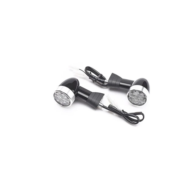 A set of bullet-style LED Indicators featuring a turned aluminium bezel, gloss black body and clear LED lens. Available in a number of different lengths to fit your motorcycle. EU homologated.