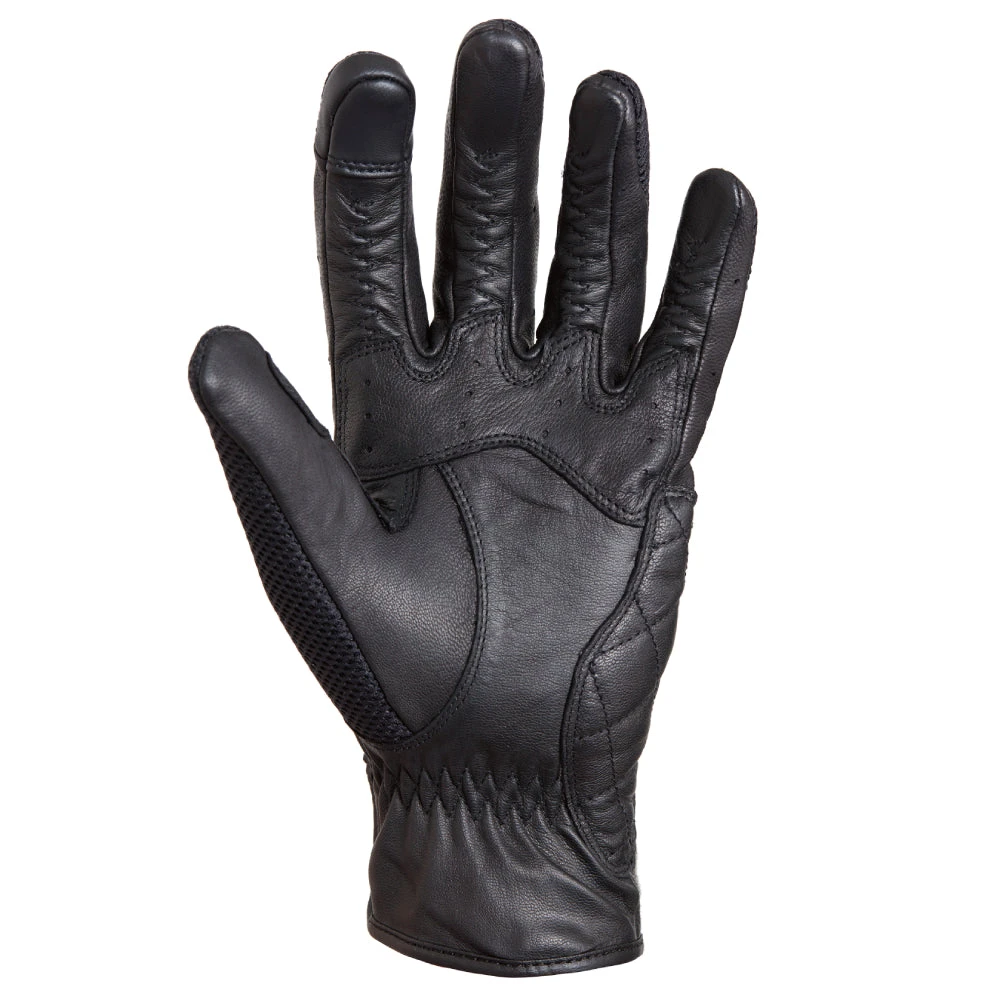 The Triumph Raven Mesh Gloves feature a classic style, boasting a lycra and mesh combination on the back of the hand for high breathability, a leather palm with excellent grip, and flexibly-protected knuckles. Additionally, the index finger includes conductive technology for operation of touchscreen devices. The gloves come in a Black-and-Heritage White two-stripe design.