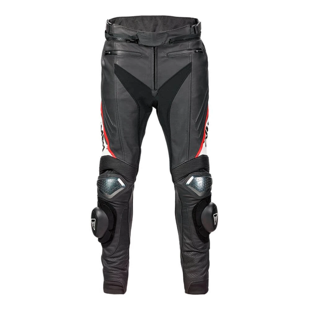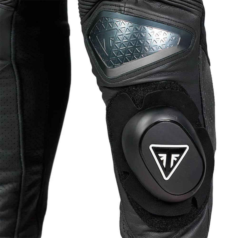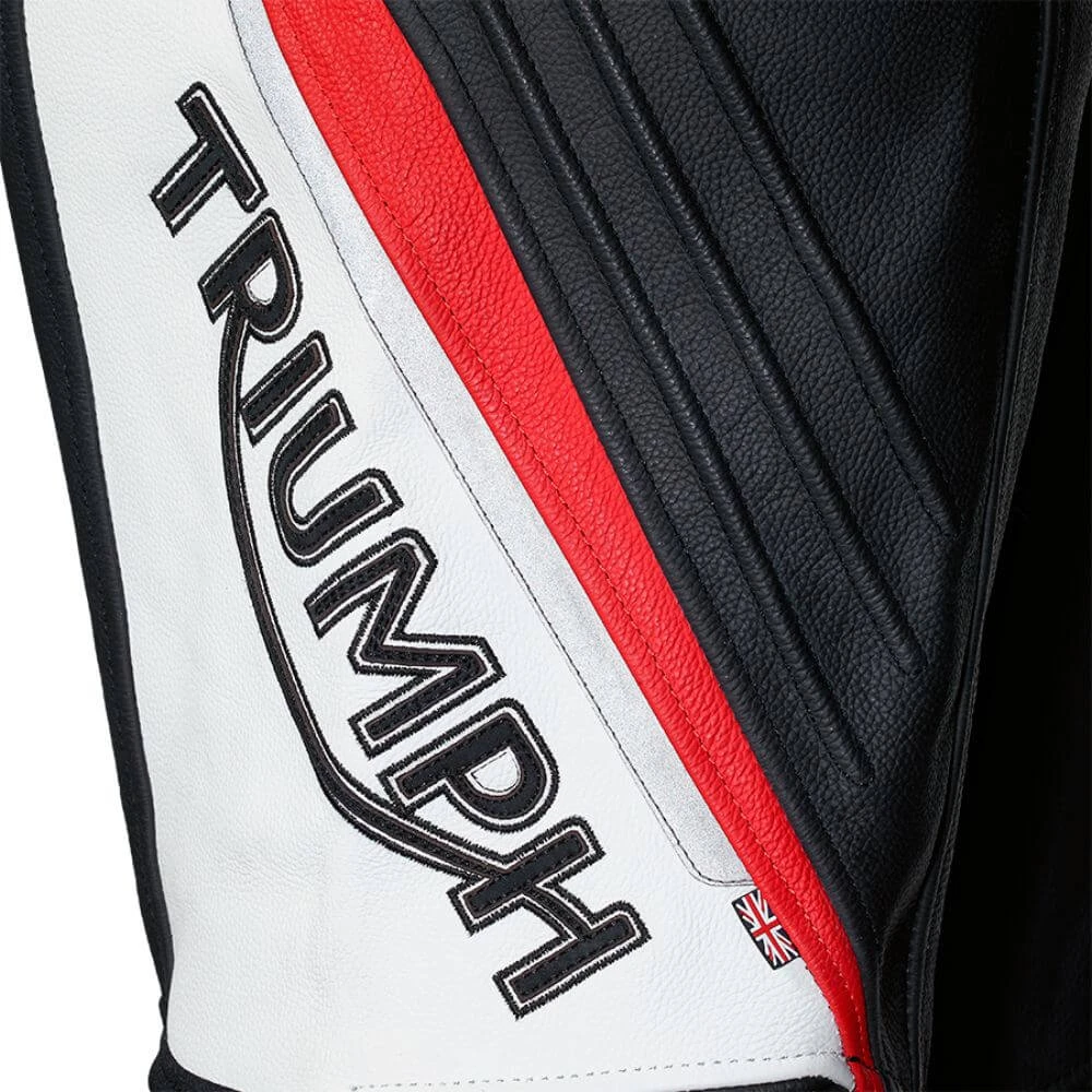 The Triumph Sports leather pants are constructed from premium grade leather with breathable mesh lining. Crafted to include removable D3O protectors at knees and hips, with additional TPU-moulded knee panels. Bold, sporty colour- blocked style with Triumph logos to complete the roadster look. These jeans can connect to any Triumph roadster jacket via a zip fastening.