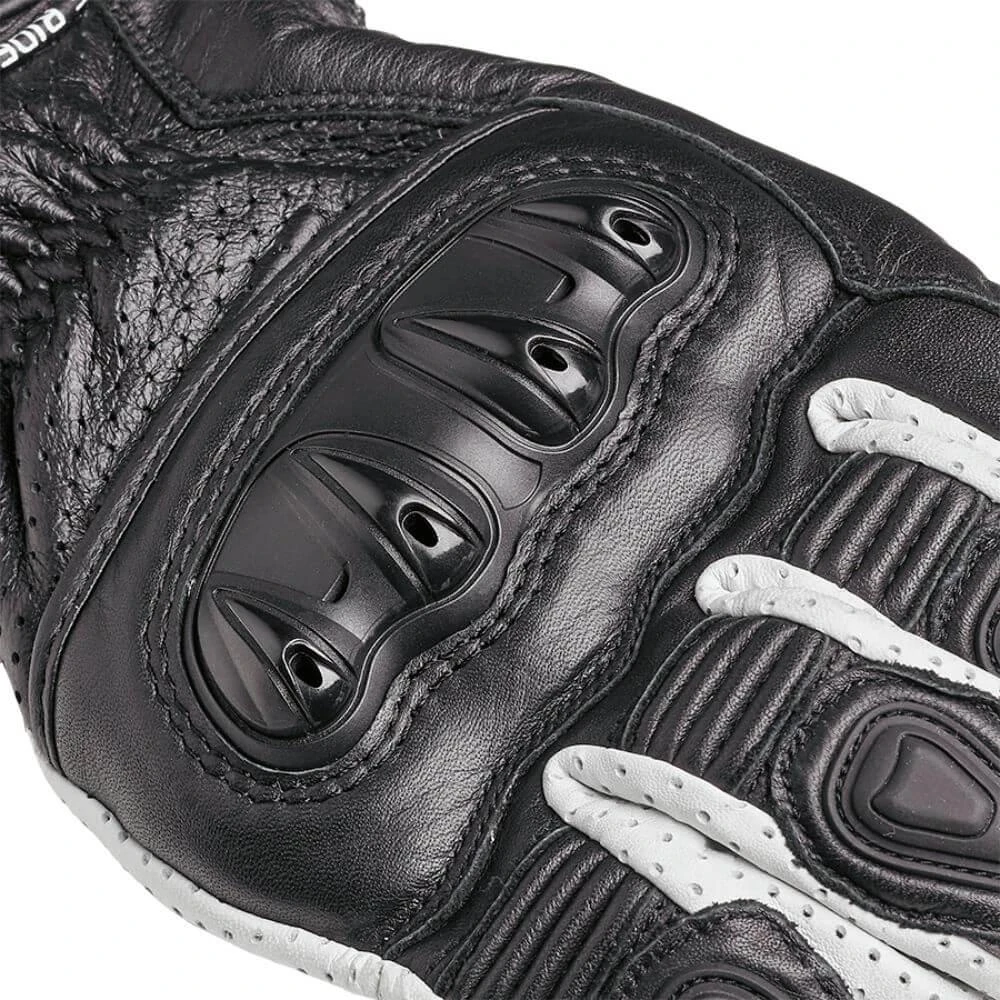 - CE certified vented PU moulded knuckle protectors with leather overlays around the side seam for added protection.