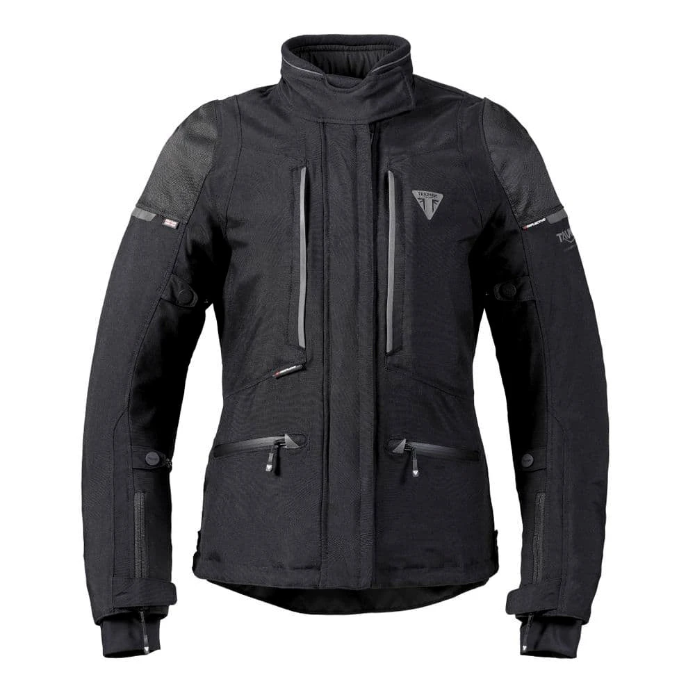 Refined adventure styling with comfort and functionality from a jacket constructed with a breathable waterproof TriTech membrane lining. The jacket incorporates removable D3O shoulder, elbow, and back protectors while dark reflective inserts provide better visibility and is part of Triumph’s unique Affix Series.
